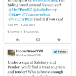 Perhaps only from the perspective of the left-coast of Canada could come marijuana infused marketing. Yes, marketing that has gone to pot – literally. No I haven’t lost my mind. Trust me, there will be a marketing lesson in here at the end… Last week I picked up a tweet from @HiddenWeedYVR. It came via @VancityBuzz which I follow. It noted how someone was hiding bags of … [Read more...]